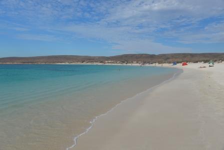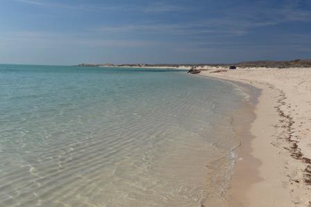 Once again we went into Exmouth to pick up a few things then headed back to the National Park to explore some more beaches. We stopped off on the way to check out the Vlamingh Lighthouse. The view from up there was terrific. There is an old radar mount from World War 2 up there surrounded by some of the sand bags they used at that time. From there we went back to Yardie Creek to have lunch at one of the picnic tables under the trees. It was another beautiful day and we went to Sandy Bay for a swim.