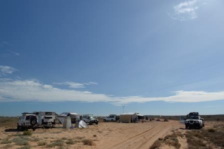 Today is a travel day. We drove back into Carnarvon to see if we could get new poles for the roof of the shower tent or a new shower tent as ours had blown down in the night and broken the fibreglass roof poles. No luck – being Easter Monday, only the chemist, news agency, supermarket and visitors centre appeared to be open. We fuelled up, filled the water tanks and parked under a tree near a table so Terry could send off his job application. I rang the kids and caught up until he finished and then we headed off to Coral Bay. All the way up the highway we passed dead kangaroos and even two dead cows on the side of the road. Terry decided that we may stay in the Caravan Park for one night but the two caravan parks were so full that you could barely walk between each campsite. Sardine camping doesn’t appeal so we decided to move on after having a look around. The beach looked quite inviting except that it was so crowded. We headed a little further up the coast to 9 mile beach – a large bush camp – where we met up with Bill from the 4wheel drive club. We had afternoon tea with Bill and met some of his friends. It was a nice afternoon despite the wind.