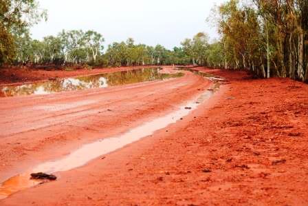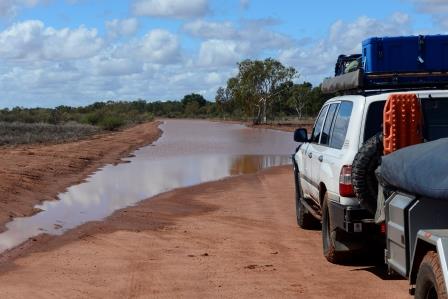 We decided to pack up wet anyway and get out of here, by the time we had packed and removed 90% of the slaters it was 11 am, we had seen one camper go past with their boat in tow. We were about 2 kms down the road and they were coming back towards us. A roadside chat revealed that further down the road was covered with water for as far as the eye could see. We kept going to check it for ourselves and to take a few photos