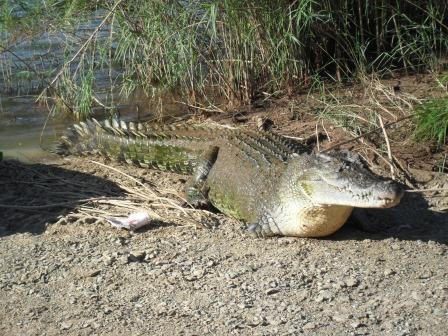 This particular croc was about 4 mtrs and had the nickname of “Tripod”, there are 2 other regular crocs in the area of the boat ramp and one of them is about 5.5 mtrs and about 2 seasons ago it took a dislike to this particular croc and chased him around the boat ramp, finally managed to grab the leg of this croc and simply tore it off. Surprisingly the croc survived but he is pretty wary of the larger croc.