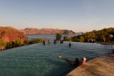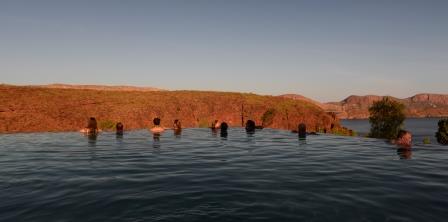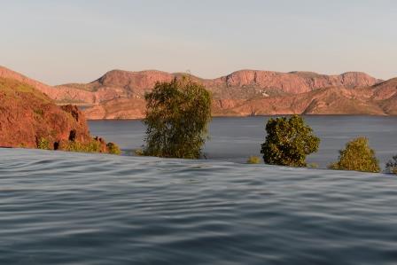 Back at Argyle we headed for the famous infinity pool. Jacky had used it the day before but this was the first opportunity I had. It is truly an amazing view from the pool looking over the steep red hills as they go straight down into the blue water of Lake Argyle. We stayed there and watched the sun go down and just soaked up the atmosphere.