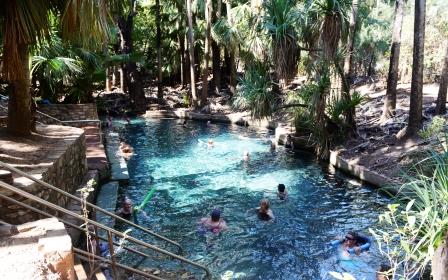 From there we went to another thermal spring called Bitter Springs, this spring was a few degrees cooler than Mataranka and much more comfortable to swim in. The highlight here is that you let the current take you down the stream about 500 mtrs, get out and walk back. Unless you took footwear in the water with you the walk back was barefoot on gravel. Jacky wasn’t keen on the walk back and when I pointed out the many Golden Orb spiders sitting in their webs above the stream she was even less keen. I gave it a go and it was nice relaxing float/swim downstream, no spiders dropped out of their webs and the walk back wasn’t too bad.