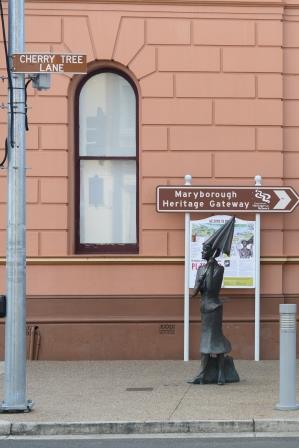P.L. Travers, the author of Mary Poppins and recently the subject of the film “Saving Mr Banks” had the distinction of being born and raised in the old bank building on the corner of Kent and Richmond St in Maryborough. Just outside the building is a statue of Mary Poppins herself, at the rear of the building was a café that served an excellent shepherd’s pie that went down very well on a fairly cool day.