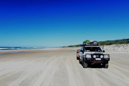 The pack up was slower than expected due to a very heavy overnight dew making everything damp. We arrived at the ferry around 10:30 rather than the planned 9:00 ferry ride. The Manta Ray ferry just goes back and forth to the island as vehicles turn up so there is no set time to be there. We let the tyres down to around 20 psi and headed out to the ferry, no dramas getting the trailer through the soft sand to the ferry, the ride to the island took around 20 mins. Off the ferry onto the beach, there is an inland track/road rather than driving around Hook Point and as high tide was at 12 noon I decided the inland road was the better option. 20 kms later we arrived at beach exit about 5 mins before the vehicles that were on the ferry with us.