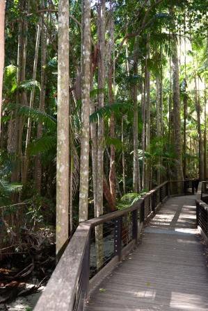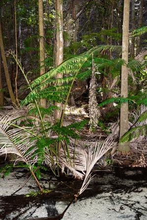 From here through dense forest and over many bumps and dips in the sandy tracks we headed for Central Station. Central Station was once called Forest Station and was the central operations area for the timber industry that was the main industry on the island from 1863 to 1991. There were up to 30 houses, a school, stores and a mill with a tram line to the coast. Most of this has been removed and the rainforest has regrown. It is the only place in the world were rainforest grows on sand and with the amount of water that continually flows down the creeks it’s no surprise that it can support rainforest. The Wangoolba Creek that flows through Central Station also supports the King Fern which is the largest fern in the world with fronds up to 7 m in length.