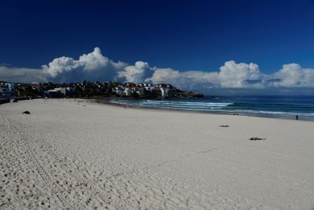 Another extra day in Sydney: Today I wanted to show Jacky the famous Bondi Beach. The weather was pretty good, just a few clouds and no rain. Adele was heading for Victoria so we agreed to take her to the airport. After a few mistakes with the GPS we managed to get her there and hour before her flight, fortunately we gave ourselves plenty of time to get there. From the airport we headed out to Bondi. The sun was out, the beach looked good, there plenty of surfers in the water a few brave swimmers. Even though it was a little warmer than it had been it was still a long way from swimming weather. I strolled up and down the beach and took a few photos while Jacky had a cuppa and read her book. After that we walked down to the end of the boardwalk and then back u the main street for lunch at HJs.
