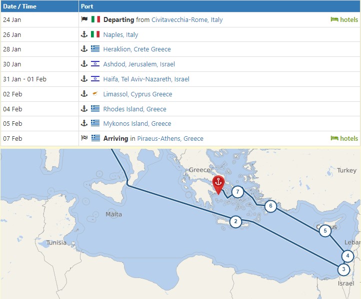 Then we head back to Athens via Crete, Israel, Cyprus and the Greek Islands